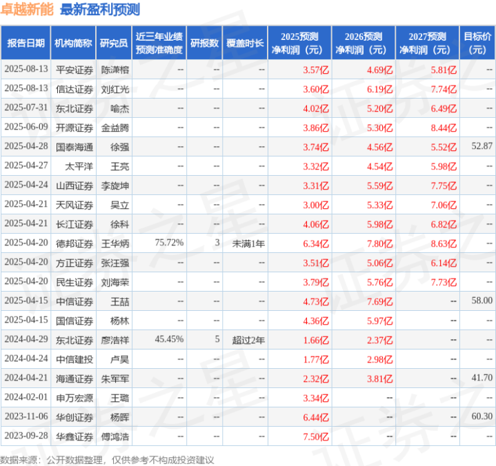 证券之星数据中心根据近三年发布的研报数据计算,德邦证券王华炳研究员团队对该股研究较为深入,近三年预测准确度均值为75.72%,其预测2025年度归属净利润为盈利6.34亿,根据现价换算的预测PE为9.01。